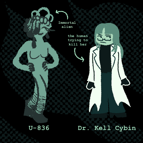 U-836, or simply 'U' for short, is an alien? Mushroom girl? Thing???? Whatever she is, she wants Cybin. Badly.